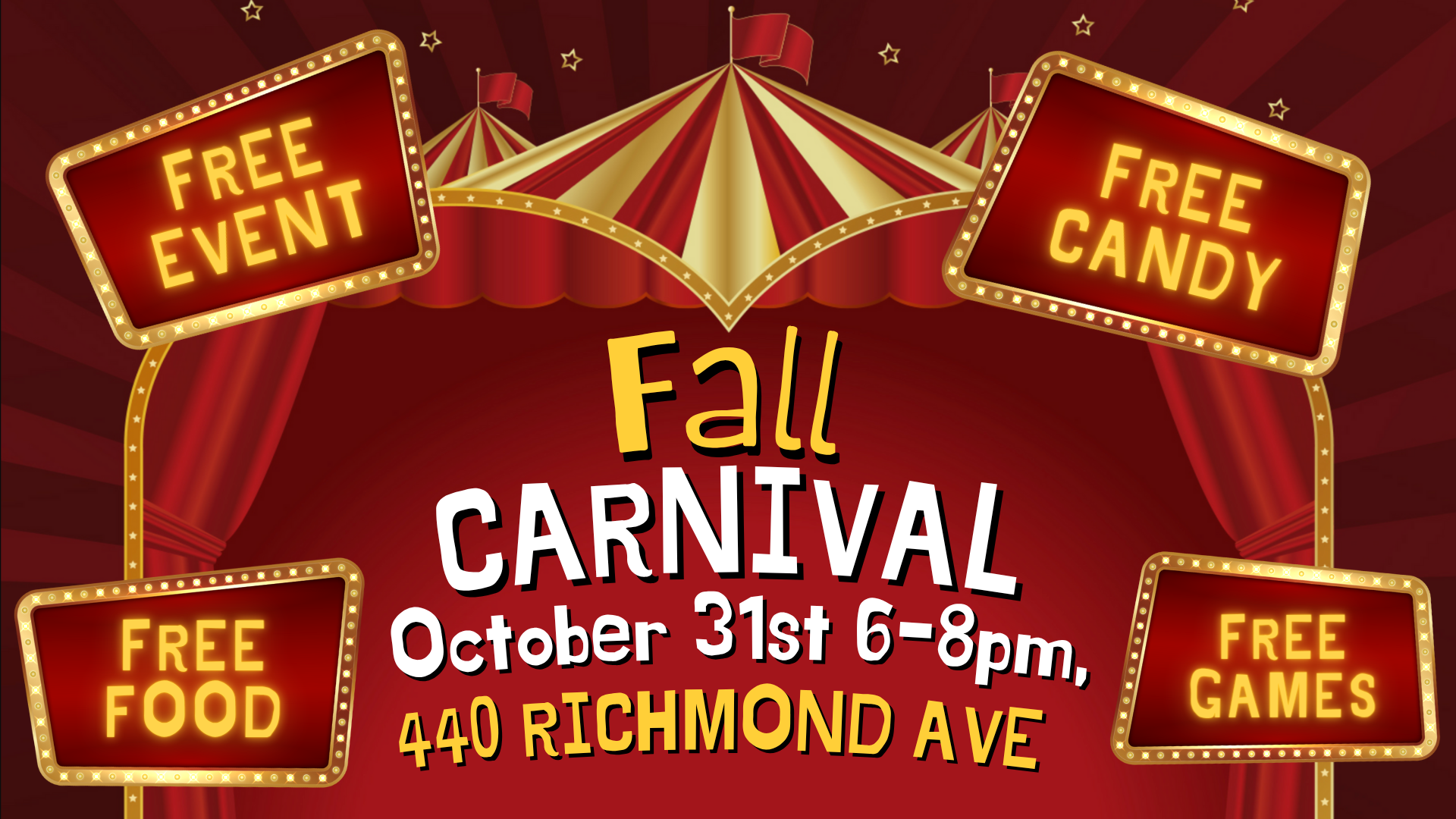 We are super excited to be hosting our annual FREE FALL CARNIVAL!!! This is a great family fun event to enjoy with lots of games, candy and so much more!